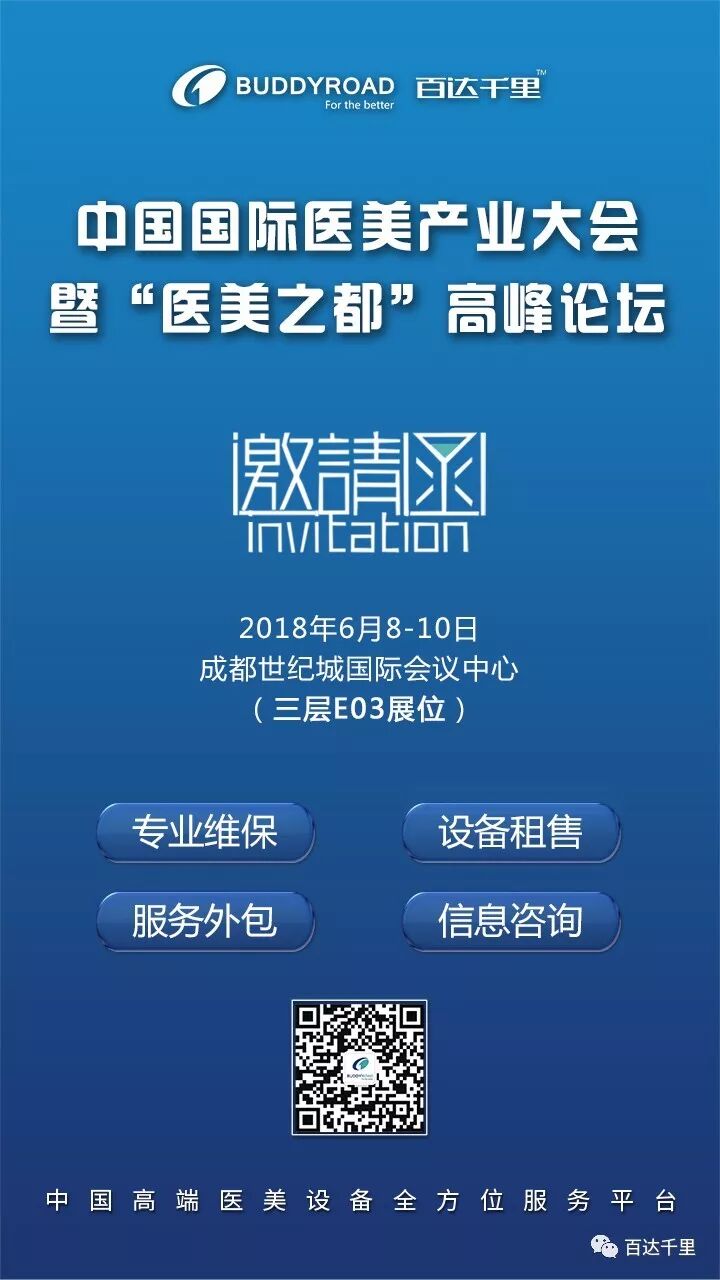 2018年6月8日-10日,成都市政府联合中整协,将在成都世纪城国际会议中心举办“医美之都”论坛暨中国第一届国际医美产业峰会。本次峰会集结22个论坛、200位全球分享嘉宾、2000位参会代表,就国家监管新政、产业顶层设计、行业实操指南、医疗技术创新(10个学术论坛)、行业并购重组与价值投资等话题展开研讨。百达千里邀您一同参加此次峰会。